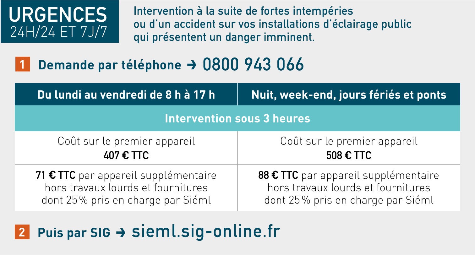 Les communes peuvent solliciter le Siéml en cas de panne. Le Siéml fait alors intervenir un prestataire habilité, ayant connaissance du réseau d’éclairage public de la collectivité. À l’issue de sa intervention, l’entreprise présente un rapport de visite.